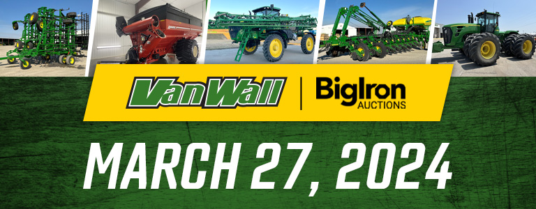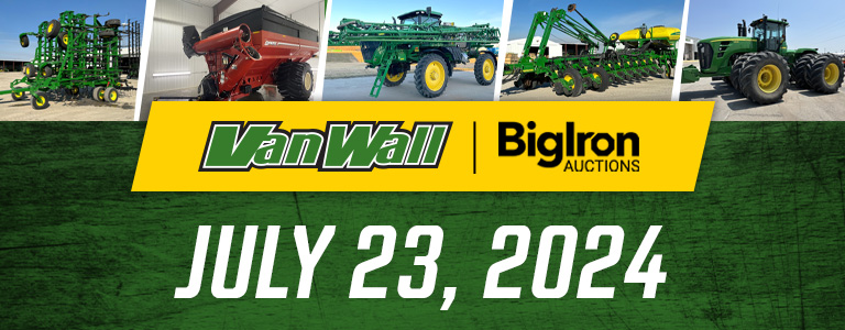 Looking for premium used equipment? Look no further than Van Wall’s weekly timed online auctions! With a great selection of quality pre-owned tractors, combines, sprayers, and more, you’re sure to find equipment listings perfect for your land. Check out our upcoming auction details below, or contact us today for more info.